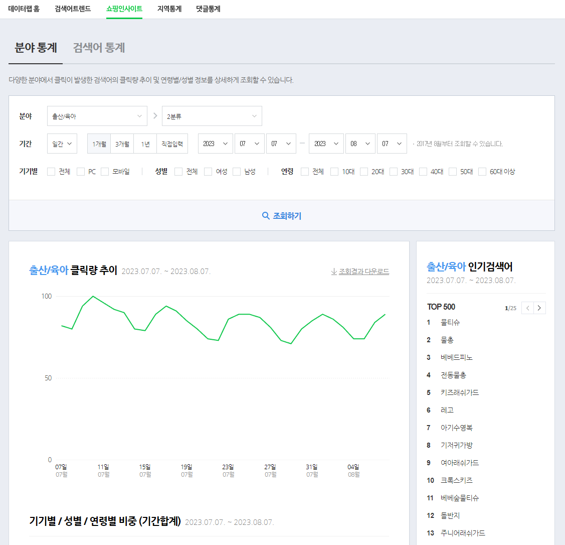 에 접속하여 쇼핑인사이트 탭을 선택합니다.